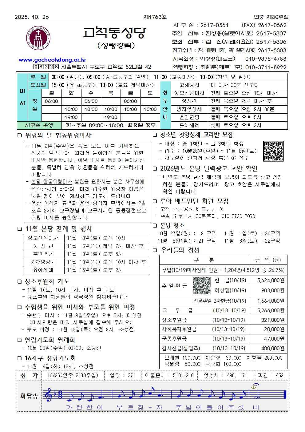 본당사무실 Tel. 02-2617-0561 Fax. 02-2617-0562